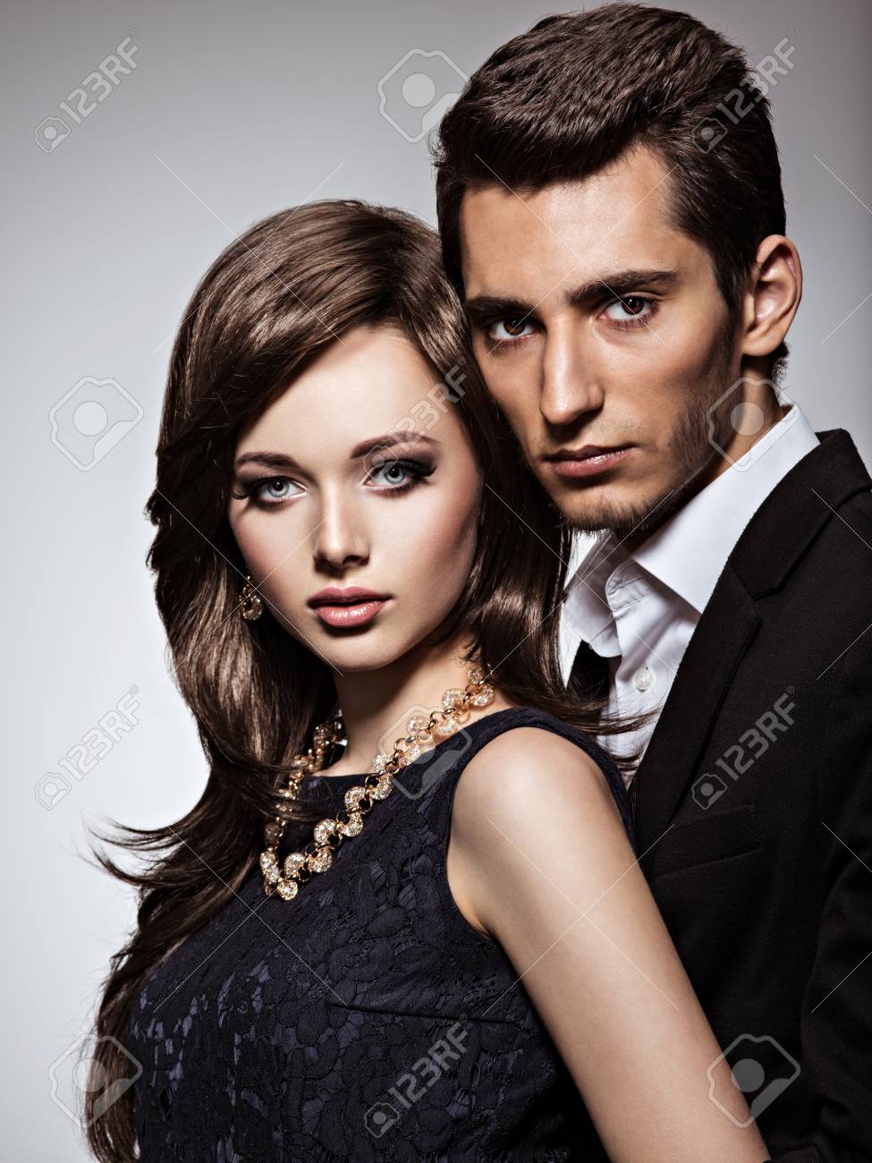 Studio Portrait Of Young Beautiful Couple In Love Stock Photo
