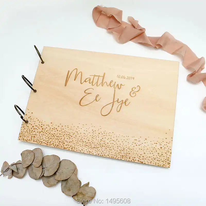 Wooden Cover Wedding Guest Book Photo Book With Graphic