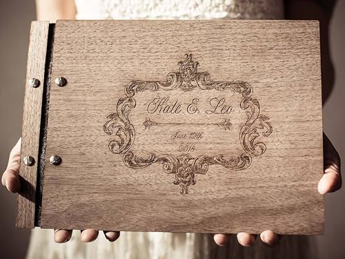 Amazon Com Vintage Wooden Guest Book Personalized Wedding Book