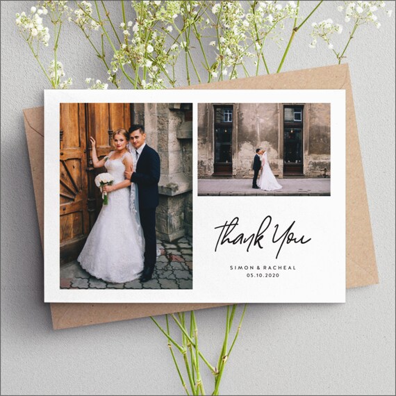 Wedding Thank You Card With Photo Thank You Wedding Cards Etsy