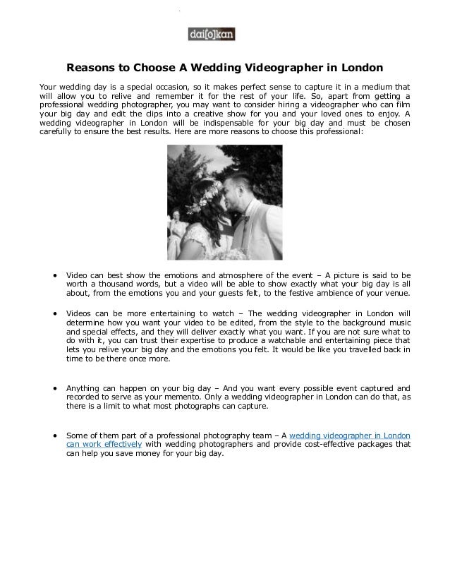 Reasons To Choose A Wedding Videographer In London