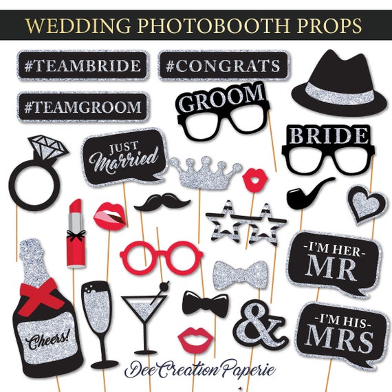 Printable Wedding Photobooth Props Glam Wedding Photo Booth Etsy