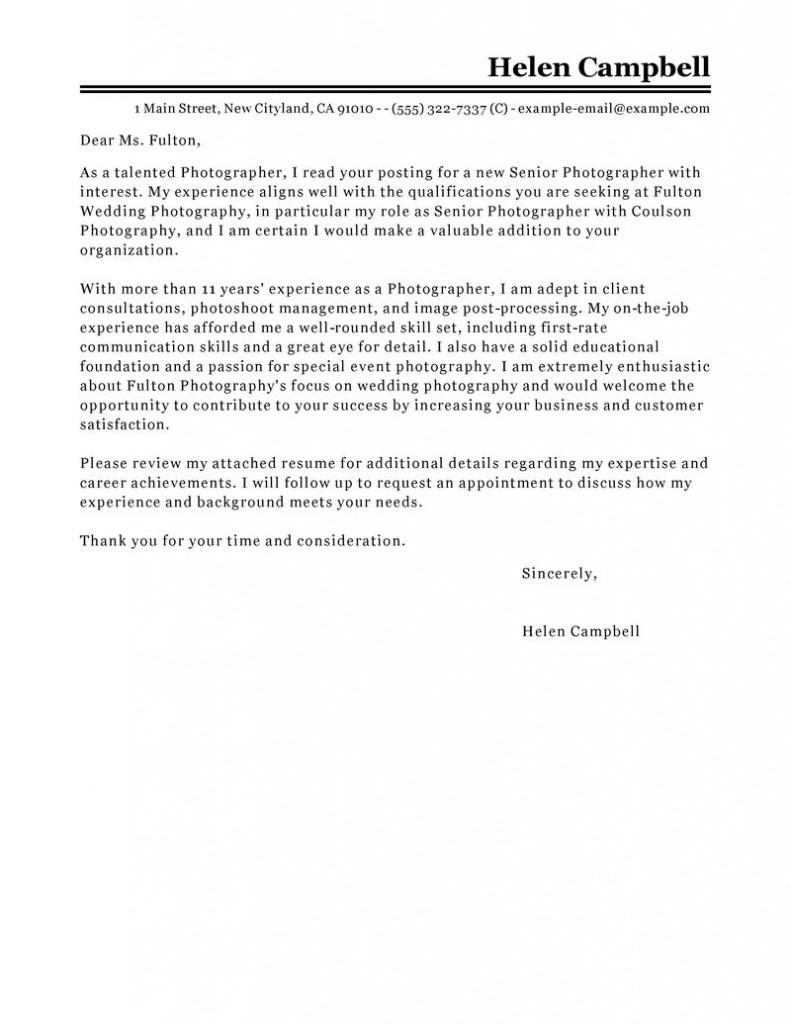 Photographer Cover Letter Example Writing Tips Resume Genius