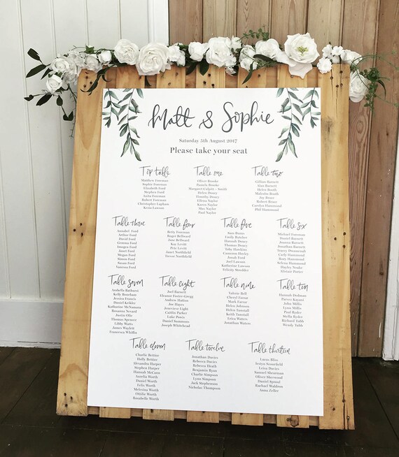 Olive Leaf Wedding Table Plan Fully Customisable Poster Or Etsy