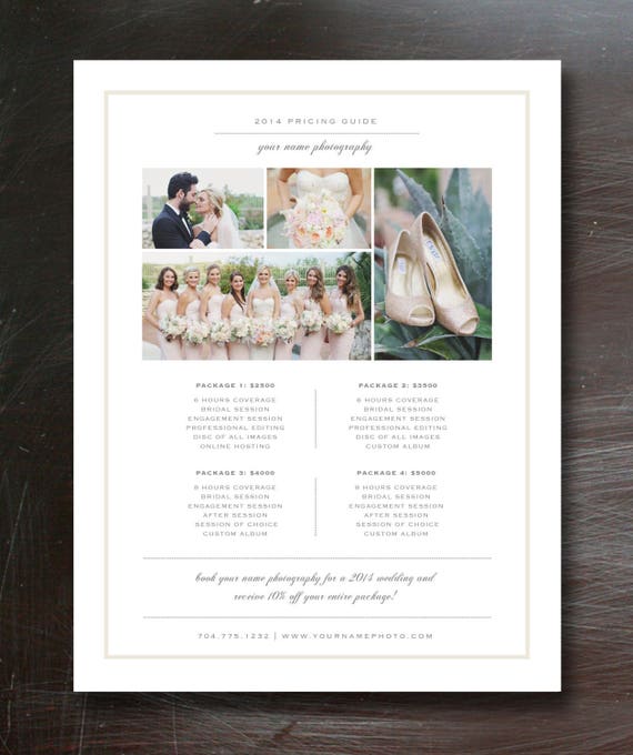 Pricing Guide Wedding Photography Photoshop Template For Etsy