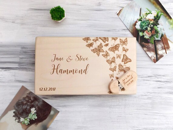 Wedding Gift For Couple Wood Photo Box Wedding Butterfly Etsy