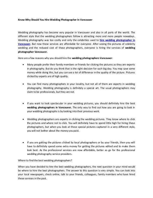 Know Why Should You Hire Wedding Photographer In Vancouver
