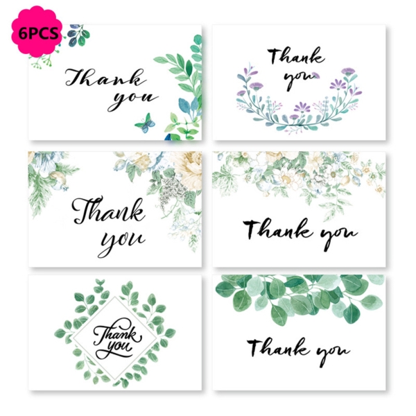 6pcs Set Elegant Thank You Printing Cards With Envelopes For