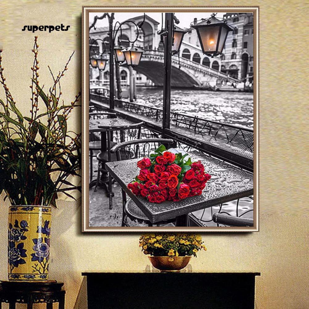 Super 5d Diy Diamond Painting Rose Flower Landscape Wall Art Gift